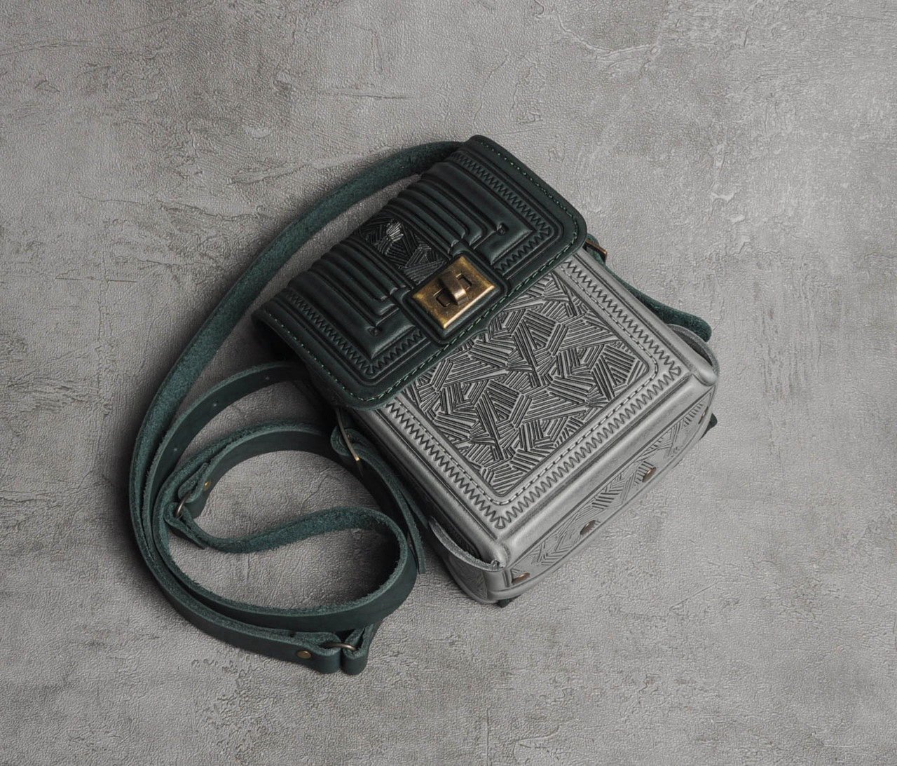 Шкіряна сумка ручної роботи з тисненим орнаментом, шкіряна сумка-барсетка через плече