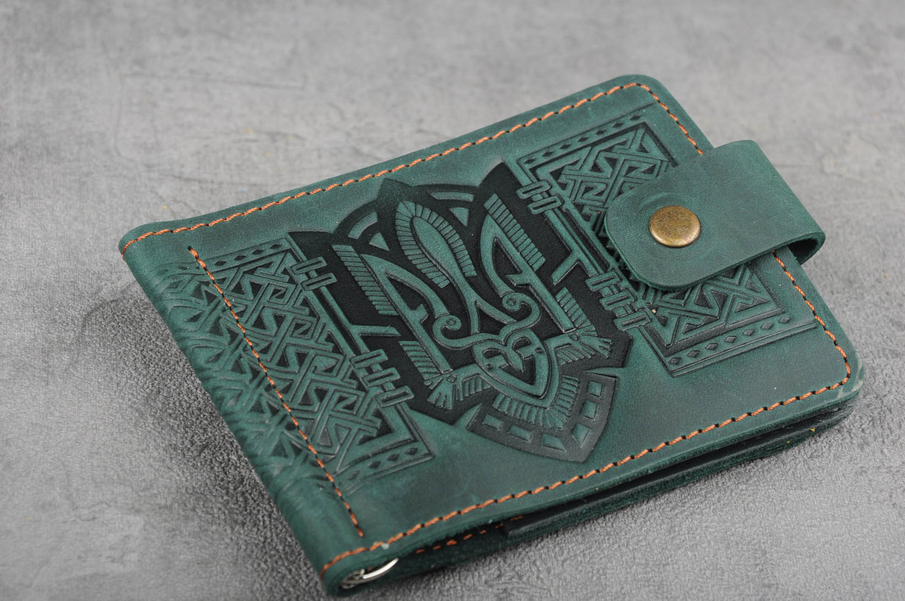Шкіряний затискач-гаманець для купюр з орнаментом "Тризуб"