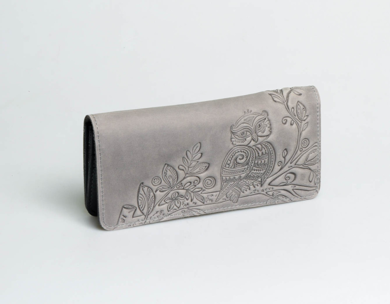 Шкіряний гаманець ручної роботи 'Сова', якісний клатч-гаманець