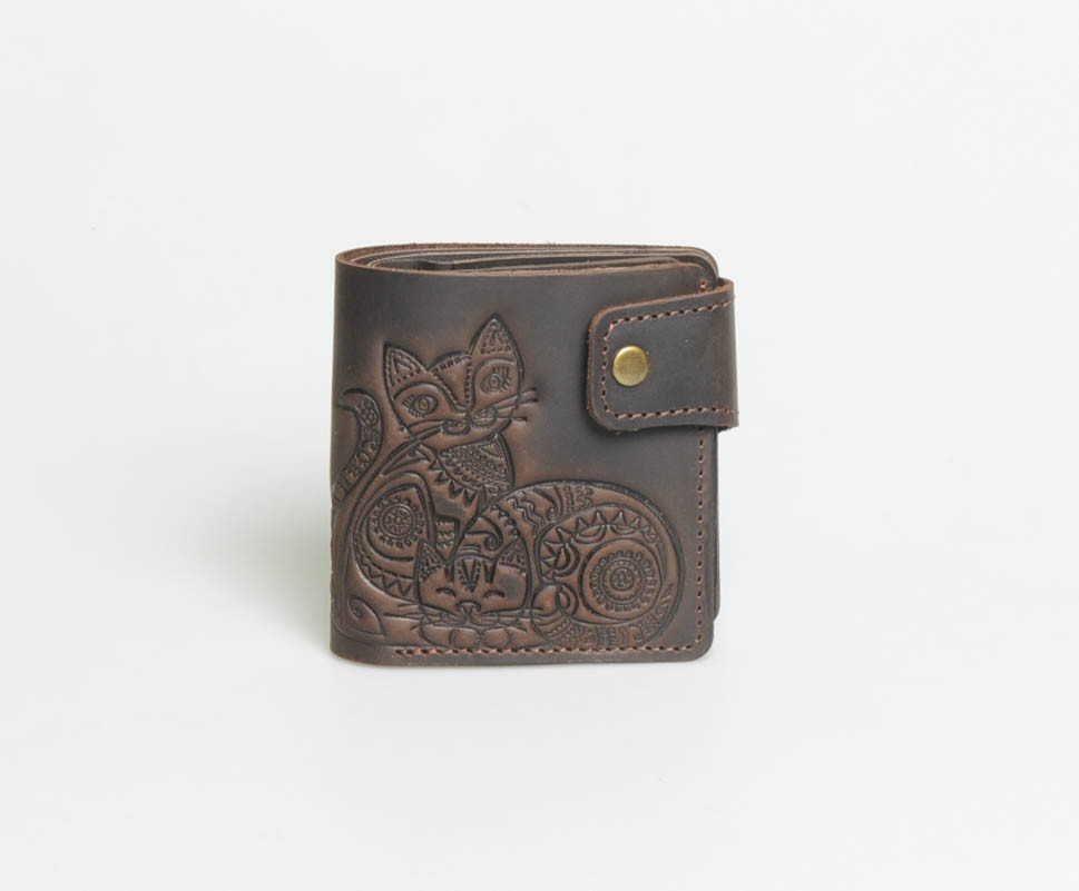 Гаманець ручної роботи з орнаментом "Котики" унікальний портмане з натуральної шкіри