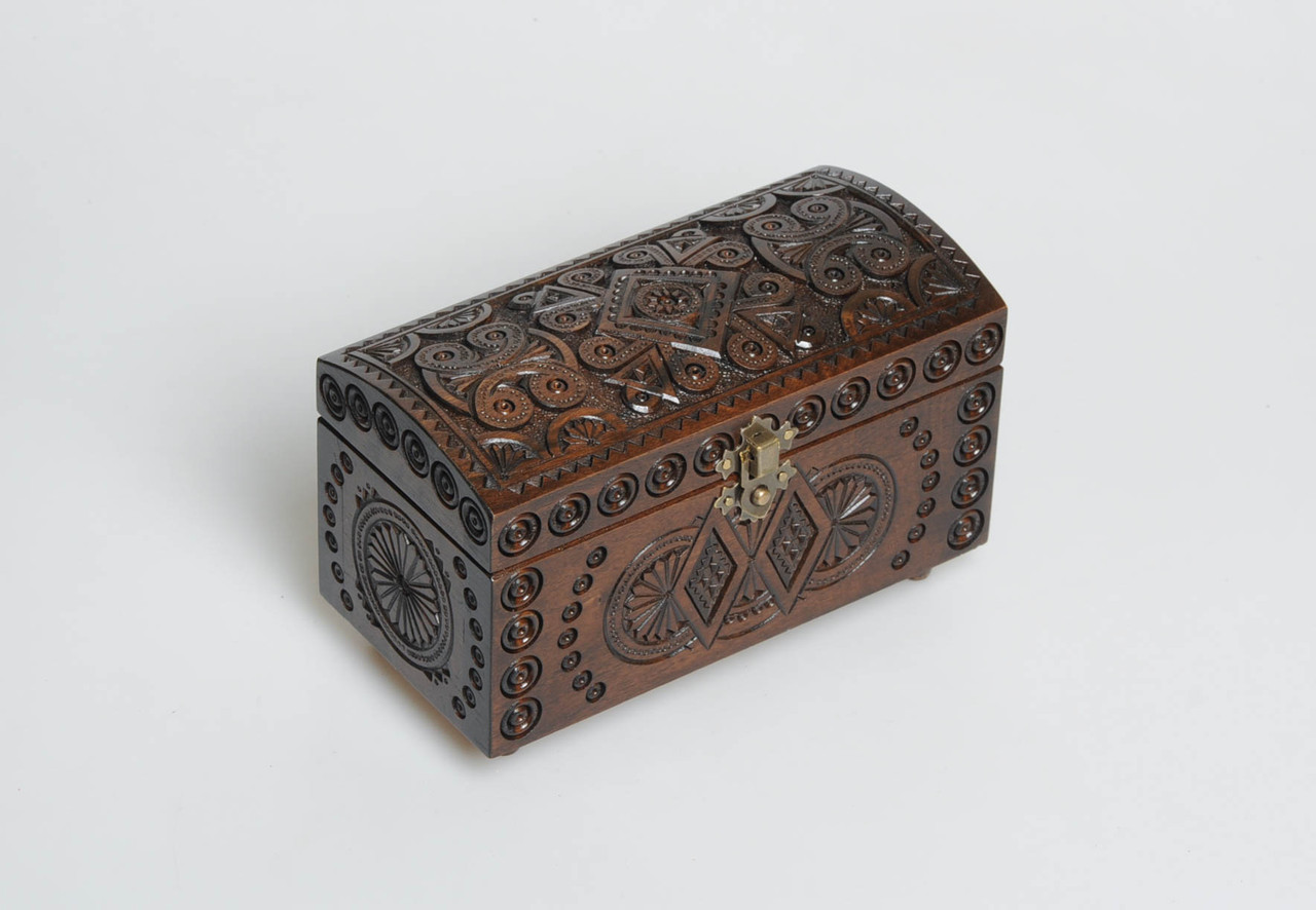 Ця прямокутна скринька для прикрас - не просто практичний елемент зберігання, а й видатний аксесуар для будь-якого будинку. Зроблена з натурального дерева і прикрашена ручним різьбленням, кожна скринька є унікальним витвором мистецтва, що додає особливої атмосфери затишку і теплоти кожному інтер'єру.